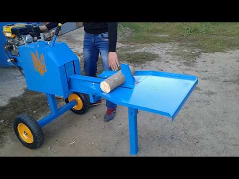 Агрегат имеет прочную станину, на которую крепится нож. Он играет роль мощного колуна. Нож разрежет любой чурбан на поленья нужного размера. Он приводится в движение с помощью гидравлического поршня и привода. Человеку остается подавать пеньки под нож. Необходимая нагрузка создается за счет гидравлики, которая приводится в движение силовым агрегатом. Специальный поршень проталкивает деревянное полено на острие ножа.