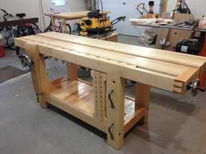 Эта конструкция является неотъемлемой для любой домашней мастерской. Именно на верстаке происходит вся магия по ремонту и сооружению каких-либо изделий. Верстак для мастерской лучше делать универсальным, т. к. потребуется обработка не только древесины, но и металла, но если площадь мастерской позволяет, тогда можно сделать два отдельных верстака, что будет удобнее, т. к. древесина требует максимально аккуратного обращения, а к металлу часто требуется приложить силу. Процесс изготовления деревянного верстака для домашней мастерской будет подробно описан в нескольких видео, которые приведены ниже. Стоит сразу отметить, что для сборки такой конструкции для домашней мастерской потребуется определенный навык работы электроинструментом. Готовый верстак для мастерской будет поддерживать работу с различными системами крепления.