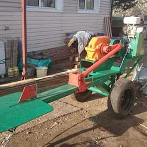 - Дровоколы с двигателем внутреннего сгорания. Принципы работы и виды станков аналогичны электроприводным. Разница заключается только в источнике энергии привода: вместо электроэнергии – бензин. Они менее экономичны (т. к. КПД ДВС существенно ниже КПД асинхронного двигателя), чем электрические, и приобретать их нужно только в случае отсутствия в месте работы источника электроэнергии.