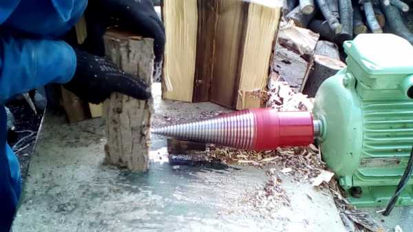 - Конусные или винтовые. Благодаря своей форме и вращению, конус внедряется в бревно и раскалывает его на части. Для придания вращения необходим электрический, бензиновый или дизельный двигатель.