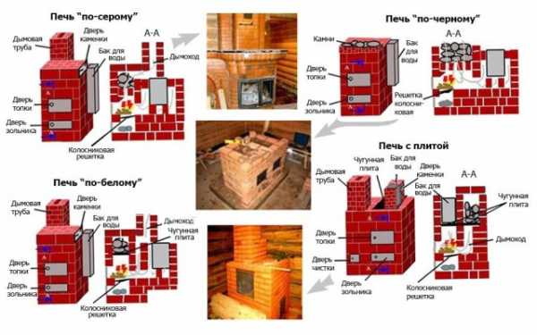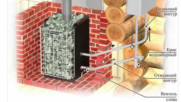 Современные печи с контуром для отопления выполняются из металла или огнеупорного кирпича, с различным размещением каменки, а также с водяной емкостью.