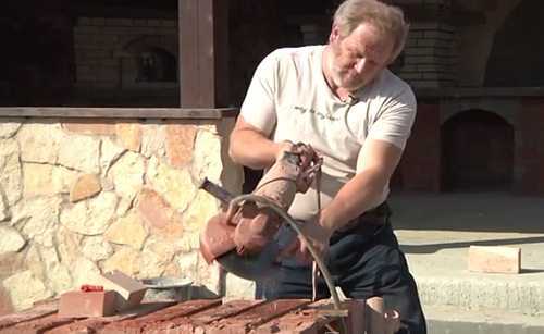 - Когда печь складывается из цельного кирпича, то это говорит о том, что её хотят сделать качественно и красиво, что влечёт за собой много резки цельных образцов. Чтобы избежать большого количества пыли, неизбежной при этом процессе – можно сделать дополнение к болгарке – подвести от электронасоса шланг к кожуху диска. Сзади кожуха приваривается трубка, на которую и надевается этот шланг, только нужно быть аккуратным, чтобы не залить электродвигатель, что приведёт к короткому замыканию.