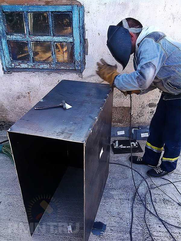 - Инструменты для обработки и соединения металла. Углошлифовальная машинка, сварочный аппарат, электроды. Идеально, если детали будут раскроены по заказу на лазерном станке с ЧПУ — это добавит красоты и облегчит задачу.
