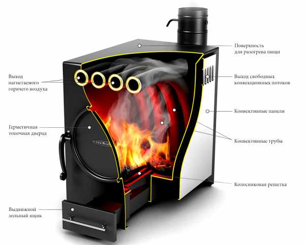 - Тепло улавливается системой теплообменников, выделяемый углекислый газ удаляется через дымоход.