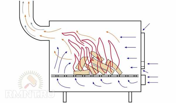 - Сначала очищается топка и зольник от сажи и пепла. Это надо делать перед каждой новой закладкой дров.