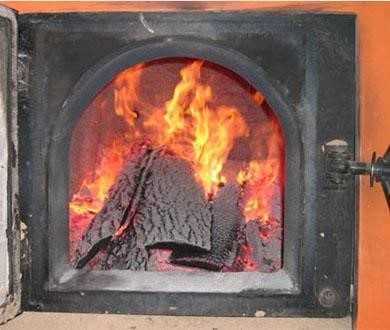 - Загруженная топка поджигается, пламя на естественной тяге нагревает топку до температуры в первичной камере 60 °C.