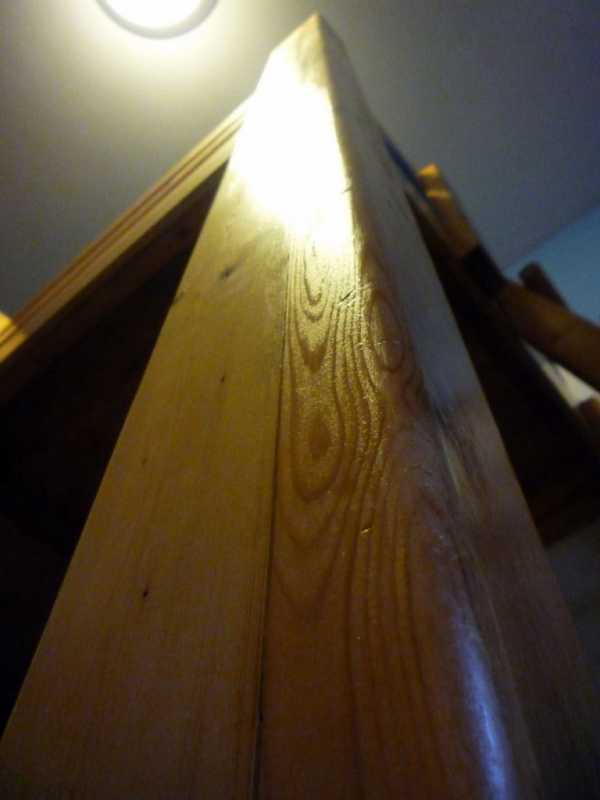 После этого в готовых стойках делаем технологические отверстия для закрепления верхнего яруса при помощи шурупов. Нижний ярус монтируется аналогично верхнему, по той же технологии. Теперь предстоит изготовить перила, для чего выбирают доски 20х100 мм. Схема сборки предусматривает проем в ограждении напротив лестницы. Это важно для доступа к ней.