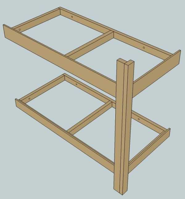 Отмерьте нужное по высоте расстояние у 10 см брусков и скрепите винтами друг к другу, как показано на изображении.