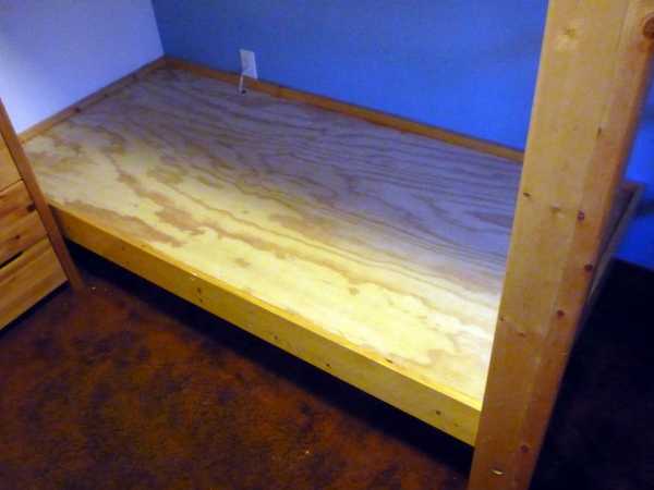 Как и в большинстве самодельных двухъярусных кроватей, так и в этом варианте все крепления будут скрыты и находится на внутренней стороне конструкции.