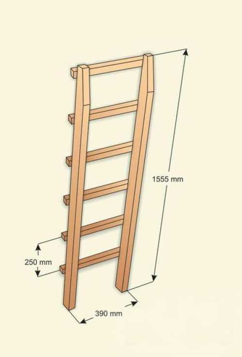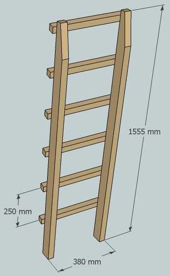 Создавая двухъярусную кровать своими руками, чертежи указывают на необходимость лестницы. Традиционно применяют лестницу из трех ступеней. Но количество ступенек может быть и больше — это зависти от высоты. По типу крепежа лестница может быть вертикальной – она плотно закрепляется на каркасе. Бывают наклонные лестницы – эти устанавливаются под каким-либо углом.