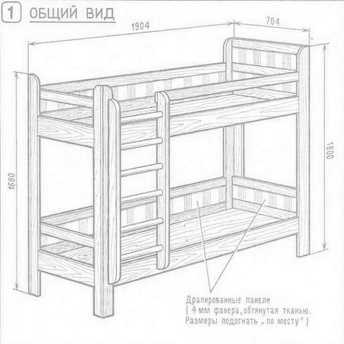 Итак. Чертежи можно нарисовать самому – сейчас существует масса различного программного обеспечения. Что же важно на чертеже, что должно быть обязательно указано на схеме? Это габаритные размеры уже готовой конструкции. Также важно указать и разработать схему сборки двухъярусной кровати. Обязательно должны быть указаны необходимые способы для соединения между собой элементов кровати, указывают порядок установки деталей. Необходимо указать размеры каждой детали и элементов крепежа.