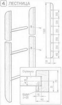 Конфигурацию лестницы каждый выбирает для себя сам. Добавим: этот элемент может быть как вертикальным, так и наклонным. В качестве направляющего основания выбирают крепкие брусья, которые будут удерживать ступени, зафиксированные болтами размером 6 мм. Размеры элементов лестничной конструкции указаны на чертеже (фото вверху). Верхняя ступенька крепится к основе наиболее длинными болтами, их же используют и для фиксации лестницы к кровати. В последнюю очередь при сборке монтируют фанерные листы, служащие основанием для укладки матраца.