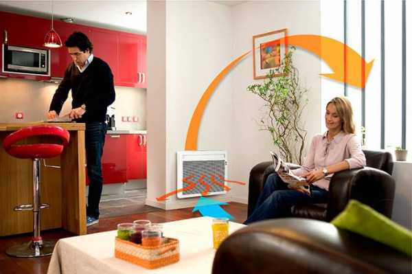 Принцип работы основан на использовании естественной конвекции в помещении. В результате практически не испаряется влага, содержащаяся в воздухе. На сегодняшний день, конвекторы, подключенные к терморегулятору, это самые экономичные электрические обогреватели для дачи.