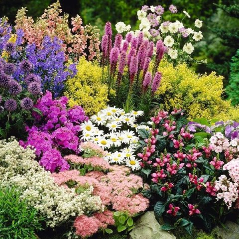 - Цветущие культуры высаживать так, чтобы цветение одних сменялось цветением других. Так получатся «цветущие волны», радующие глаз с весны и до поздней осени.