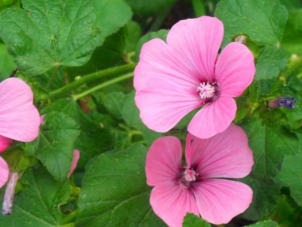 В процессе культивирования молодых кустов необходимо регулярно рыхлить и пропалывать землю, когда лаватера окрепнет, необходимости в этих процедурах не будет. За весенне-летний период растения нужно пару раз подкормить, в противном случае цветение не будет таким обильным.