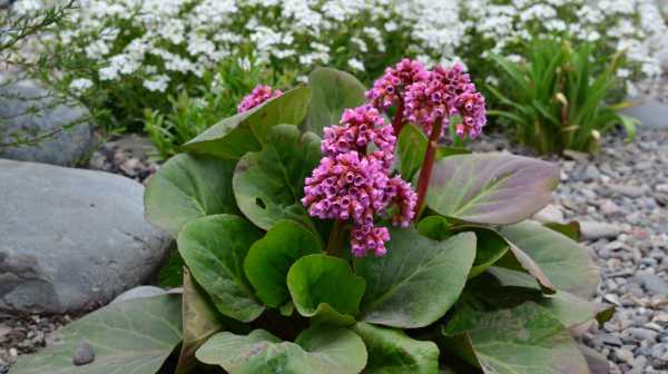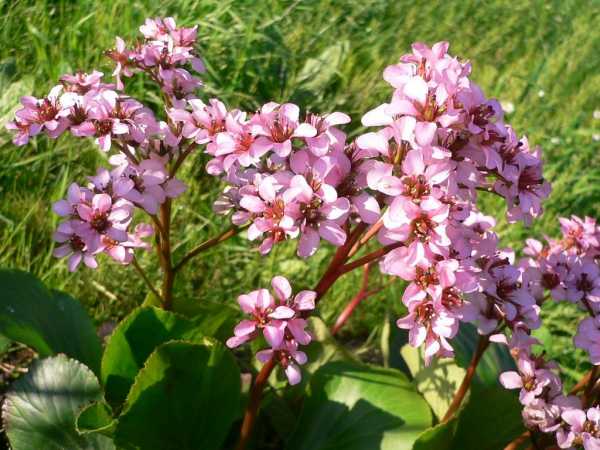 8. Бадан (Bergenia). Наиболее распространенными являются виды B. cordifolia, B. purpurascens, сорт Morgenrote. Тенистые места не являются помехой для роста мощных листьев и красивых весенних цветков. Посадив бадан в приствольных кругах садовых деревьев, остается только любоваться его красотой, а также использовать для получения ароматного монгольского чая.