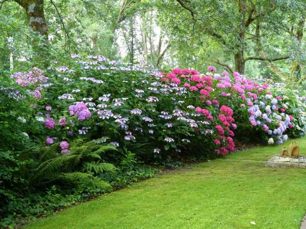 11. Гортензия (Hydrangea). Сложно найти более красивое растение для посадки в качестве защиты от посторонних глаз, например, туалета или компостных ям. Кроме этого белоснежные шапки неприхотливой «аудзисай», пришедшей к нам из Японии, в окружении аккуратных лужаек, рядом с величественными папоротниками (Polypodiophyta) делают уютным и волшебным любой уголок сада. Одинаковой популярностью пользуются и гортензия метельчатая, и крупнолистная.