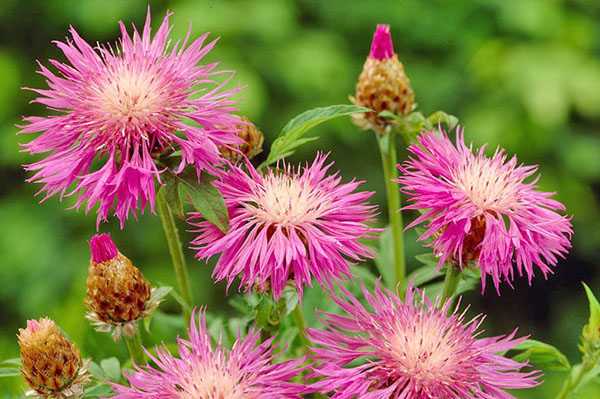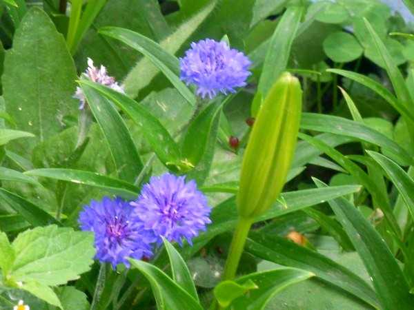 12. Василек (Centaures). Всеми любимый, цветок василек, посаженный рядом с красным или голубым льном, на фоне кустика многолетнего декоративного овса и нежных колокольчиков, создаст атмосферу цветущего луга на участке.