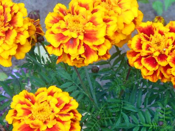 Известны бархатцы простые и махровые. Расцветка может быть красная с желтой каймой. А еще желто-оранжевая с коричневыми пятнами. Это очень теплолюбивые и светолюбивые цветы. Они нетребовательны к почве, стойко переносят засуху и переизбыток влаги.