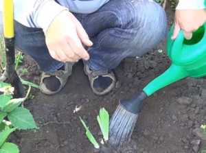 Поздней осенью луковицы сажают в почву. Сверху укрывают.