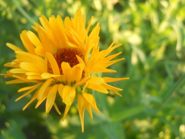 1. Календула (Calendula). Современные сорта ‘Orange Ring’, ‘Radio‘, ‘Muraji‘ этого лекарственного цветка, словно небольшие солнышки украсят даже затененный участок в саду. Иногда, кажется, что она растет сама, а поэтому проста и неинтересна. Это не правильное мнение. Цветок красив на грядках, среди пышных букетов, не считая его целебных свойств и способности создания особой атмосферы на участке. Замечательное свойство размножаться самосевом делает выращивание календулы простым.