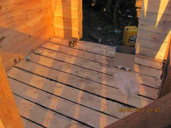 Полы в душе для дачи мы будем делать из доски толщиной 40 мм. Для этого укладываем их на обвязку, прикручиваем саморезами.