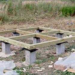 После того, как фундамент готов, стоит изготовить обвязку для пола. Она представляет собой прямоугольную раму из досок, уложенных на ребро. Доски скрепляются универсальными шурупами или гвоздями. Шестимиллиметровых шурупов с длиной около 100 мм будет вполне достаточно для надежного скрепления конструкции, а вот шурупы для гипсокартона не годятся из-за слишком большой хрупкости.