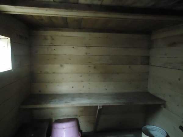 - Установка лавок и двери. Нижнюю полку нужно прикрепить к стенам на уровне 55-65 сантиметров от пола, а верхнюю – на 1 метр от потолка. Доски для этого предварительно шлифуют, обрабатывают антисептиком.