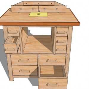 В начале статьи мы говорили о самодельном вертикальном станке для фрезерных работ по дереву. Это значит, что рабочий инструмент устанавливается в вертикальное положение. Если дрель удобнее вертикально устанавливать над столом, то ручной фрезер лучше стационарно вмонтировать в стол снизу столешницы. Соответственно, перед тем как сделать фрезерный станок по дереву самому, нужно подобрать стол или хотя бы надежную столешницу.