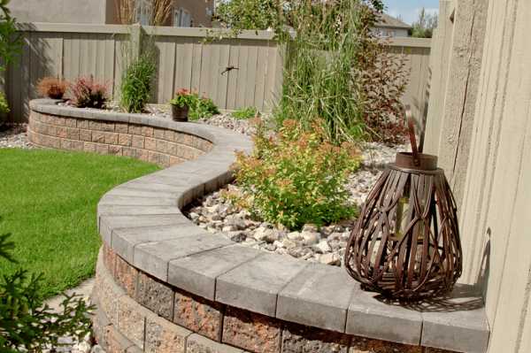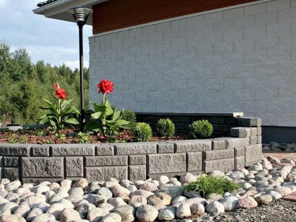 Еще одним вариантом оформления цветника из камня является приподнятая клумба, расположенная над землей на уровне от 0,3 до 1,5 метров. Поскольку каменные стенки такой клумбы имеют большой вес, то обязательно делается прочное основание или фундамент под них.