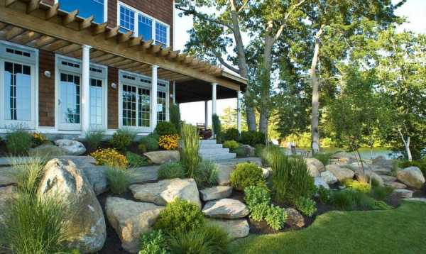 Основываясь на базовых концепциях создания уникальных и эксклюзивных композиций можно воссоздать на участке уникальный уголок, в котором гармонично сочетается нежная зелень и изысканные цветы с грубыми каменными вкраплениями.