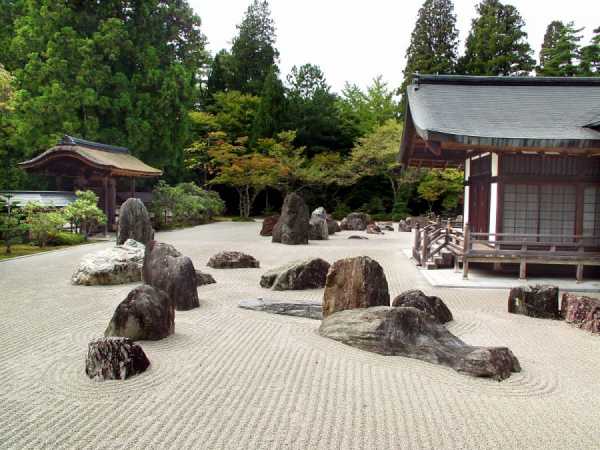 Японский сад или успокаивающий сад камней. Представляет собой базовое воплощение восточной философии, основанной на гармоничных отношениях человека и природы, в их оформлении преобладает большое количество камней.