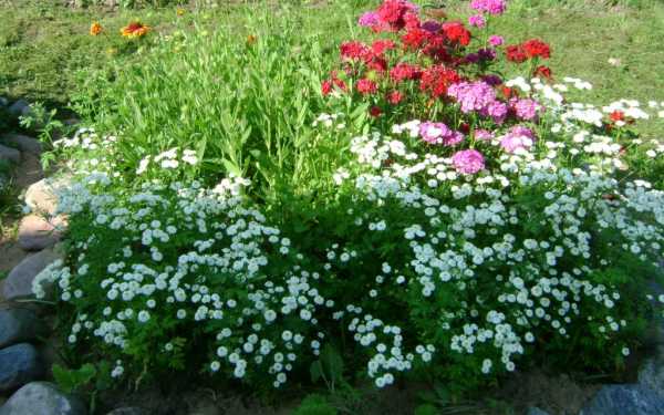 Допускается сделать простой цветник, сделав небольшой бордюр из камней. Но теперь хозяева своих дач считают что большие цветники из камня смотрятся солиднее.