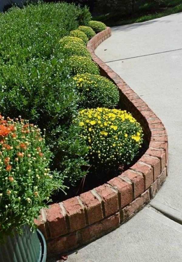Бордюр из кирпича делается аналогичным образом. Ров сначала засыпается песком, потом слоем щебня или гравия. Сверху укладывают кирпичи, но не скрепляют их раствором, позволяя излишкам воды свободно выходить за пределы.