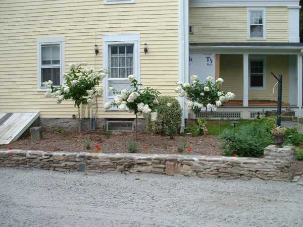 Высокий цветник требует строительства мощной подпорной стенки из камня высотой 500-1000 мм. Дизайн клумбы будет более оригинальным, если соорудить ее по многоярусному типу. Стены должны в обязательном порядке скрепляться цементным раствором.