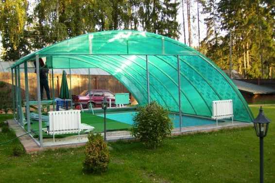 А порой навесы используются даже в качестве крыши для бассейнов.