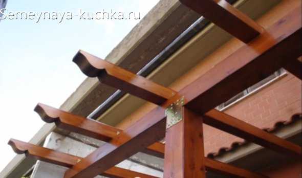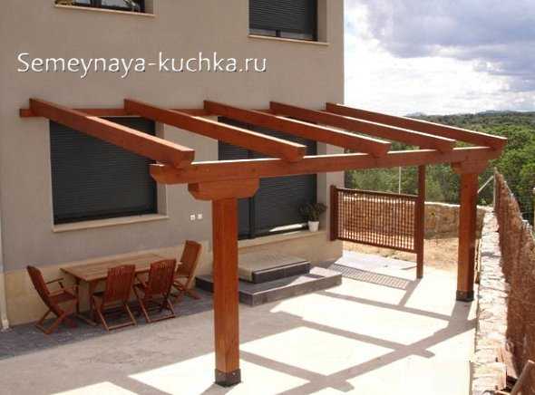 Давайте сначала посмотрим на классический навес из дерева.