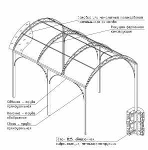 - балки-обрешетка крыши (для настила на них поликарбонатного листа)