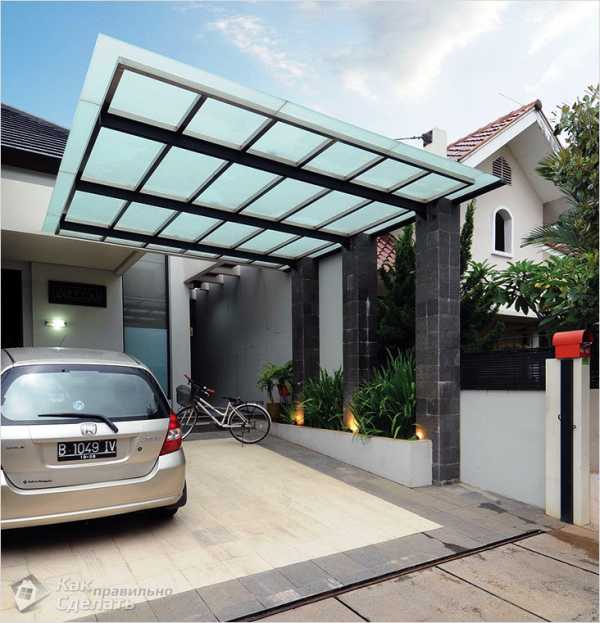 У владельцев частных домов часто возникает идея сборки навеса для авто, для этих целей хорошо подходит все тот же поликарбонат.