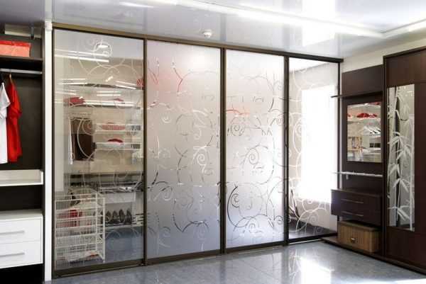Вариант отделки глухой створки ПВХ пленкойГлухие монолитные створки в широких проемах будут смотреться тяжелыми и не создадут эффекта легкости и широты пространства. Поэтому в перегородках, ширина которых больше 2-х метров, устанавливают панели рамного типа или створки со сплошным остеклением. Обычные прозрачные стекла не устанавливают. Чтобы не тратиться на дорогие рифленые стекла, можно оконное стекло оклеивать ПВХ пленкой с имитацией гравировки.