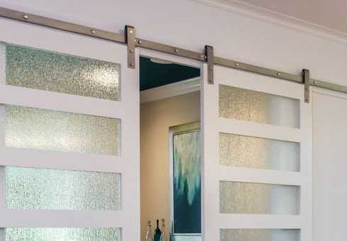 Для самостоятельной сборки раздвижных дверей и их установки лучше сделать межкомнатную перегородку с безрамными полотнами с верхними направляющими. В этой конструкции не нужно выравнивать пол для установки нижней направляющей, соблюдать четкую параллельность между верхним и нижним рельсом.