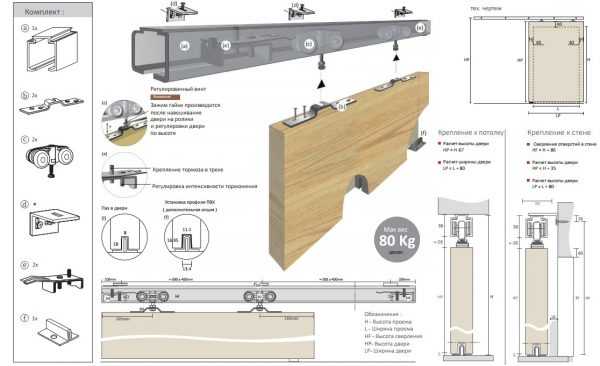 Система с нижней направляющей- С двумя направляющими, закрепленными сверху и снизу. Как правило, такие механизмы нужны для установки складных перегородок.
