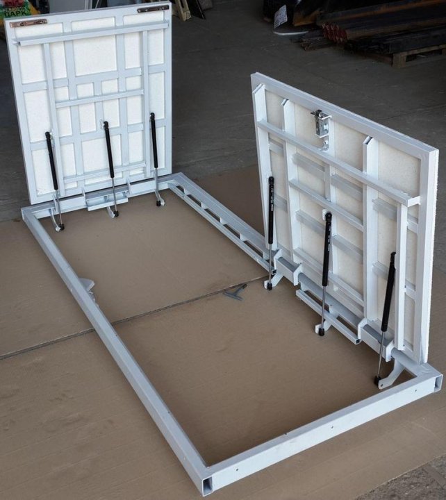 - Коробка под такой люк должна быть обязательно усилена, иметь угловую основу и крепиться на специальных петлях.