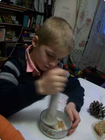 - ΠΠ΅ΡΠ°Π΅ΠΌ ΠΈΠ·Π΄Π΅Π»ΠΈΠ΅ Π·Π° Π»Π΅ΡΠΊΡ ΠΈΠ»ΠΈ ΠΏΡΠΎΠ²ΠΎΠ»ΠΎΠΊΡ, ΠΊΡΠ΅ΠΏΠΈΠΌ ΠΊ Π΄Π΅ΡΠ΅Π²Ρ ΠΈ Π·Π°ΡΡΠΏΠ°Π΅ΠΌ Π²Π½ΡΡΡΡ ΠΊΠΎΡΠΌ.