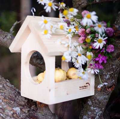 ΠΡΠΎ Π΅ΡΠ΅ ΠΎΠ΄ΠΈΠ½ Π±ΡΡΡΡΡΠΉ ΠΈ Π½Π΅Π΄ΠΎΡΠΎΠ³ΠΎΠΉ Π²Π°ΡΠΈΠ°Π½Ρ ΠΊΠΎΡΠΌΡΡΠΊΠΈ, ΠΊΠΎΡΠΎΡΡΠΉ ΠΏΠΎΡΠ°Π΄ΡΠ΅Ρ ΠΈ Π²Π·ΡΠΎΡΠ»ΡΡ , ΠΈ Π΄Π΅ΡΠ΅ΠΉ, ΠΈ Π³ΠΎΠ»ΠΎΠ΄Π°ΡΡΠΈΡ Π·ΠΈΠΌΠΎΠΉ ΠΏΡΠΈΡ. ΠΠΎΠ·ΡΠΌΠΈΡΠ΅ ΠΊΡΠ°ΡΠΈΠ²ΠΎΠ΅ ΠΊΡΡΠΏΠ½ΠΎΠ΅ ΡΠ±Π»ΠΎΠΊΠΎ, ΡΠ°Π·ΡΠ΅ΠΆΡΡΠ΅ Π΅Π³ΠΎ ΠΏΠΎΠΏΠΎΠ»Π°ΠΌ. ΠΡΠΏΠΎΠ»ΡΠ·ΡΡ ΠΌΠ΅ΡΠ°Π»Π»ΠΈΡΠ΅ΡΠΊΡΡ ΡΠΎΡΠΌΠΎΡΠΊΡ Π΄Π»Ρ ΠΏΠ΅ΡΠ΅Π½ΡΡ, ΡΠ΄Π΅Π»Π°ΠΉΡΠ΅ ΡΠΈΠ³ΡΡΠ½ΠΎΠ΅ ΡΠ³Π»ΡΠ±Π»Π΅Π½ΠΈΠ΅ Π² ΡΠ΅Π½ΡΡΠ΅ ΡΡΡΠΊΡΠ°. Π Π΅ΡΠ»ΠΈ Ρ Π²Π°Ρ Π΄ΠΎΠΌΠ° Π½Π΅ Π½Π°ΡΠ»ΠΎΡΡ ΠΏΠΎΠ΄Ρ ΠΎΠ΄ΡΡΠ΅ΠΉ ΡΠΎΡΠΌΠΎΡΠΊΠΈ, Π²Ρ ΠΌΠΎΠΆΠ΅ΡΠ΅ ΠΏΡΠΈ ΠΏΠΎΠΌΠΎΡΠΈ Π»ΠΎΠΆΠΊΠΈ ΠΈΠ»ΠΈ Π½ΠΎΠΆΠ° Π²ΡΡΠ΅Π·Π°ΡΡ Π²ΡΠ΅ΠΌΠΊΡ Π»ΡΠ±ΠΎΠ³ΠΎ Π²ΠΈΠ΄Π° ΠΏΠΎ ΡΠ²ΠΎΠ΅ΠΌΡ Π²ΠΊΡΡΡ. ΠΠ½ΡΡΡΡ ΡΠ³Π»ΡΠ±Π»Π΅Π½ΠΈΡ ΠΏΠΎΠΌΠ΅ΡΡΠΈΡΠ΅ ΡΠΌΠ΅ΡΡ ΡΠ°Π»Π° Ρ ΡΠ΅ΠΌΠ΅ΡΠΊΠ°ΠΌΠΈ, Π·Π΅ΡΠ½Π°ΠΌΠΈ ΠΈΠ»ΠΈ Ρ Π»Π΅Π±Π½ΡΠΌΠΈ ΠΊΡΠΎΡΠΊΠ°ΠΌΠΈ. Π’Π΅ΠΏΠ΅ΡΡ Π²Π°ΠΌ ΠΎΡΡΠ°Π»ΠΎΡΡ Π²Π²ΠΈΠ½ΡΠΈΡΡ Π² ΠΏΠΎΠ»ΠΎΠ²ΠΈΠ½ΠΊΡ ΡΠ±Π»ΠΎΠΊΠ° ΡΠ°ΠΌΠΎΡΠ΅Π· ΠΈ ΠΏΡΠΈΠΊΡΠ΅ΠΏΠΈΡΡ ΠΊ Π½Π΅ΠΌΡ Π²Π΅ΡΠ΅Π²ΠΎΡΠΊΡ ΠΈΠ»ΠΈ Π»Π΅Π½ΡΡ Π΄Π»Ρ ΠΏΠΎΠ΄Π²Π΅ΡΠΈΠ²Π°Π½ΠΈΡ ΠΊΠΎΡΠΌΡΡΠΊΠΈ Π½Π° Π΄Π΅ΡΠ΅Π²ΠΎ.