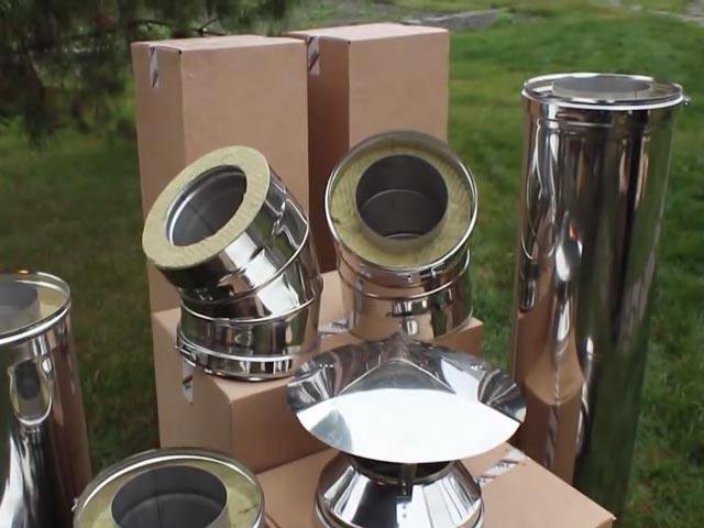 Дымоход из нержавеющей стали собирается из следующих типов комплектующих: