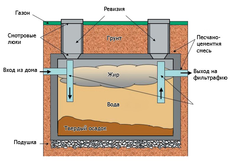 Септик для дачи без откачки своими руками (без электричества) — погруженное в грунт сооружение, состоящее из: