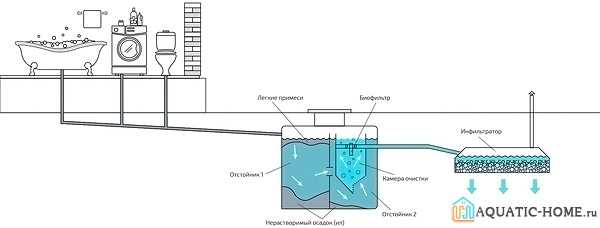 Последний отсек служит для хранения очищенной воды, заодно работая как окончательный отстойник.