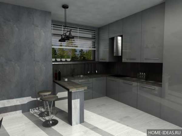 Это очень выигрышное и стильное решение при планировке как кухни, так и любой комнаты в квартире. Предметы мебели в фиолетовых тонах, шторы или ковер на фоне серого цвета будут прекрасно вписываться в общую атмосферу помещения.