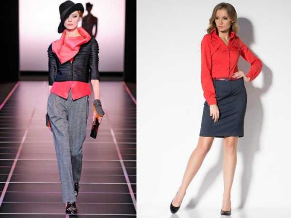 - Насыщенными ансамбли получаются тогда, когда используют оттенки разной светлости, предположим, темно-красный со светло-серым или светло-синий с темно-серым.